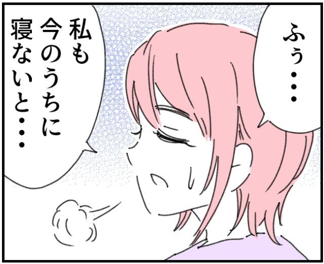 こはるちゃんを寝かしつけた後、育児をなめているいちろうさんも「じゃあ僕も寝るよ」と寝てしまった後、いちろうさんの育児に不安を感じていたかおりさんは、「ふぅ・・私も今のうちに寝ないと」と呟きました。