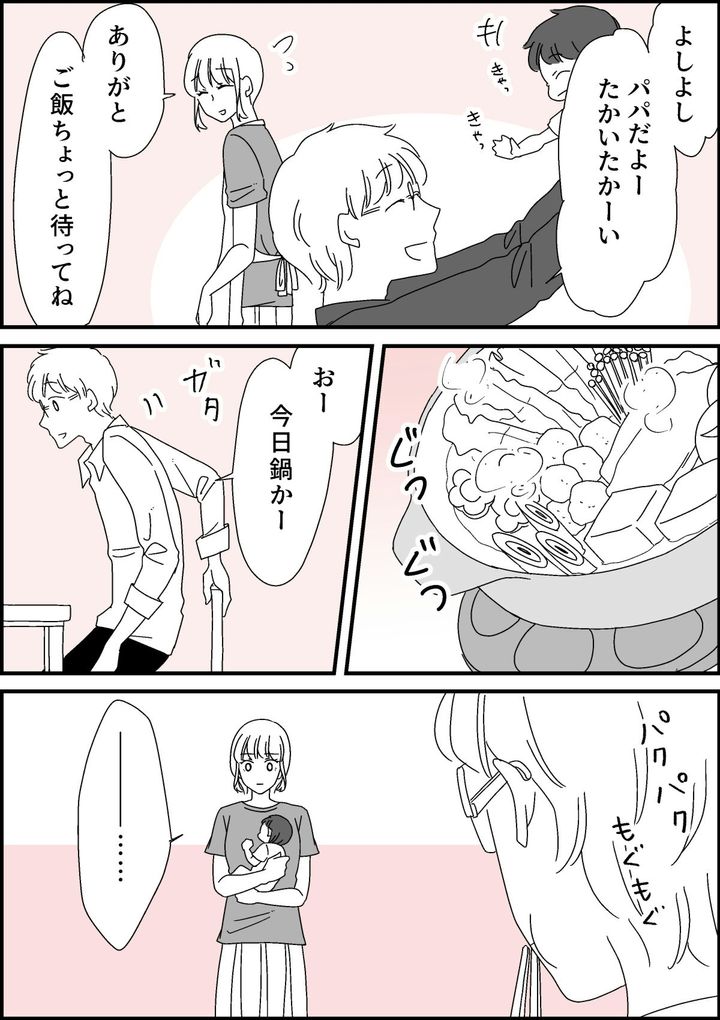ママ友に会ってから数日がたったけれど、まことさんの心の中はもやもやしたまま。今日もパパは疲れて帰ってきて、まことさんのもやもやは募っていく。もう限界に感じたまことさんがとった行動とは?「夫婦円満に足りないピース」第6話です。