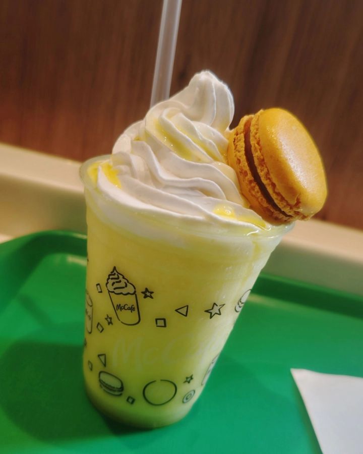 期間限定のスイーツ「マカロン ばなな」を上にトッピングすれば、さらに夏気分も上がります♡