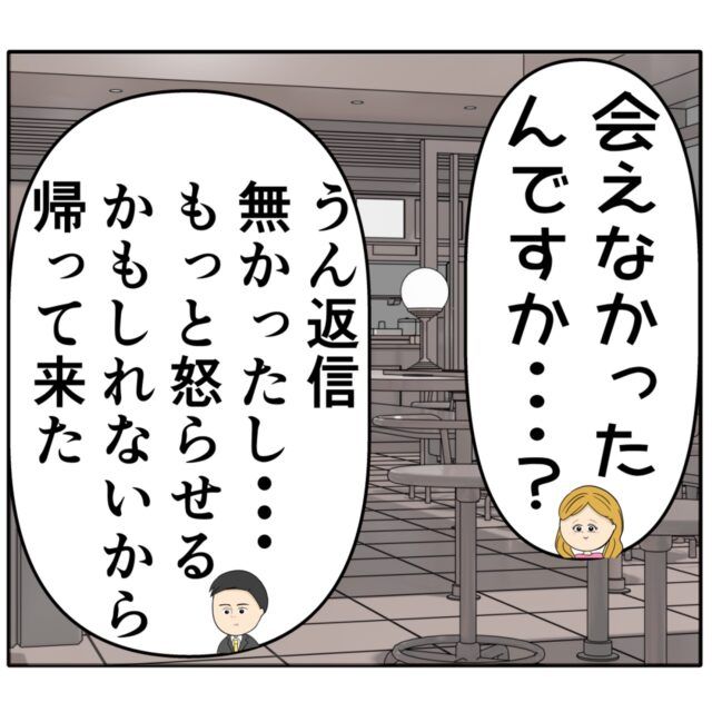 「うん、返信無かったし・・・もっと怒らせるかもしれないから帰って来た」と良し男さん。実家の前まで行ったものの、中まで入る勇気はなかったようです。