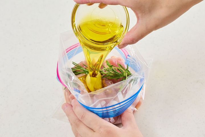 ハーブとにんにく、オリーブオイルで鶏もも肉を漬け込むことで、ジューシーで香りが豊かな仕上がりに。生のハーブを使うことで、食欲をそそる風味がたまらない一品ができ上がります。