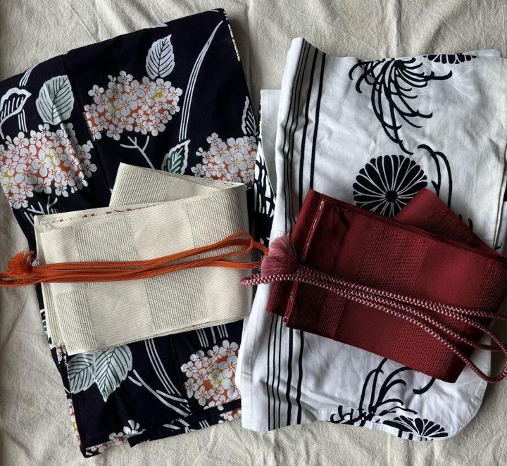 最近はアンティークの浴衣に興味があって、新たに白地と紺地の浴衣を購入しました。帯を合わせるなら何色がいいかな? 帯留めはどうする? 洋服と同じようにコーディネートを考えるのが楽しくって。