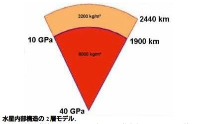 以上のことから、水星は地球よりも重い物質でできていることは明らかです。しかし、水星の表面は月のような岩石質の物質でおおわれているので、内部に重い物質があると考えられます。