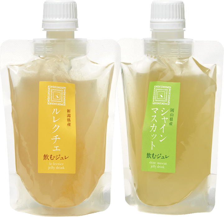 とろっとした食感が新しい♡ 左から:飲むジュレ ルレクチェ ¥398、同 シャインマスカット ¥468