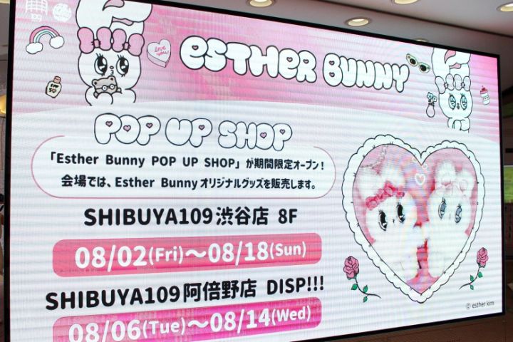コラボ期間中は、SHIBUYA109渋谷店とSHIBUYA109阿倍野店で、『Esther Bunny POP UP SHOP』でオープンします。