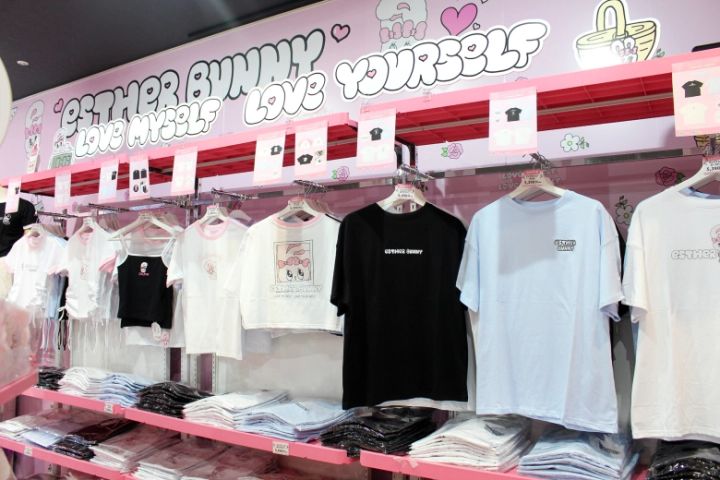 Esther Bunnyの文字やイラストが可愛いアパレルブランドも販売されています。