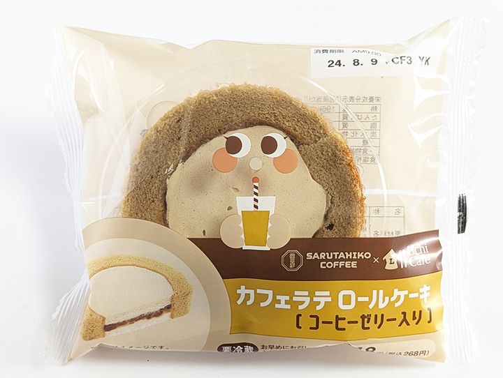 人気コーヒーショップの『猿田彦珈琲』とローソンのプレミアムロールケーキがコラボしました。かわいいイラストのパッケージが目印です。