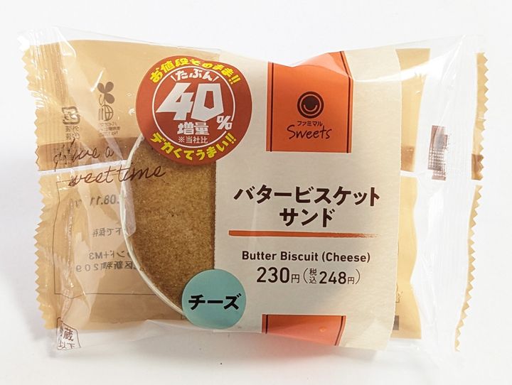 ファミリーマート 【たぶん40%増量作戦】増量バタービスケットサンド チーズ¥248