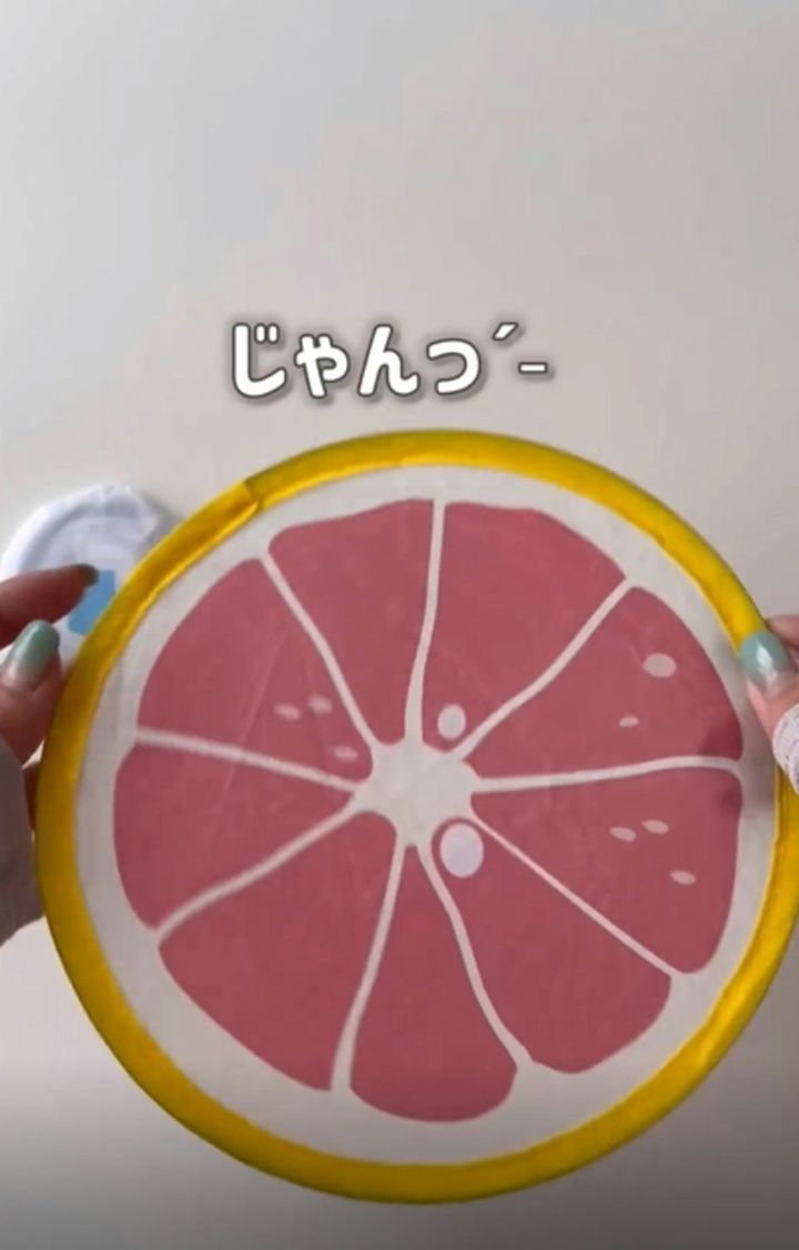 折りたたまれたうちわを開くと、大きさは25センチになり、大きめなうちわに変身しました。グレープフルーツの模様もかわいいですね。