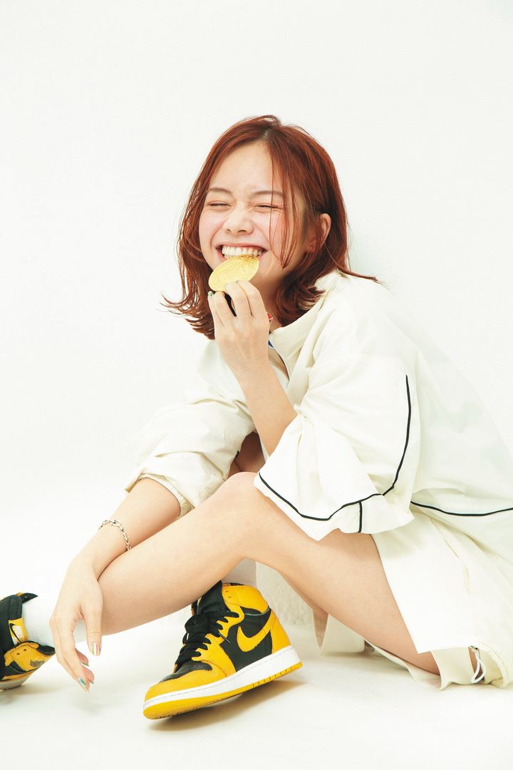 勝利を自然に引き寄せられるのは、 ジューシーでポジティブ感があふれる こんなオレンジレッドに違いない ! 鎖骨下のロブにフェイスレイヤーを入れて 顔まわりでゆるんと揺らぐ毛束をつくり、 毛先だけ自然な外ハネに。顔まわりは 内巻きにスタイリングを。顔色の血色感も 高まるから、超強力な応援団長として、 いつも隣にいてもらいたい♥