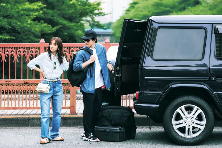 ICPOが準備した新居は、新婚カップルに人気の中目黒!バッグ¥90,100(ストラスベリ―)サンダル¥25,300(ビルケンシュトック/ビルケンシュトック・ジャパン カスタマーサービス)ベルト¥14,500(バナナ・リパブリック)サングラス¥53,570(オリバーピープルズ/ルックスオティカジャパン カスタマーサービス)ピアス¥81,400(ミチウィルウェイ/フォーティーン ショールーム)バングル¥39,600(エムシー・スタジオ/ZUTTOHOLIC)[Mr.]Tシャツ¥1,990〈Uniqlo U〉シャツ¥2,990(ともにUNIQLO)パンツ¥25,300(リサウンド クロージング)サンダル¥9,900(ナイキ スポーツウェア/NIKEカスタマーサービス)キャップ¥9,790(カシラ/CA4LA プレスルーム)サングラス¥35,200(ロッツァ/デリーゴジャパン)時計¥26,400(クラスフォーティーン)バックパック¥24,200(アウトドアプロダクツ/アウトドアプロダクツカスタマーセンター)キャリーオン¥198,000(トゥミ/トゥミ・カスタマーセンター)その他/スタイリスト私物