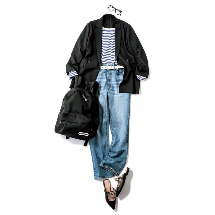 脚の付け根からすらっと伸びるストレートシルエット。デニムパンツ「LOUISE」¥29,700(ヤヌーク/カイタックインターナショナル)