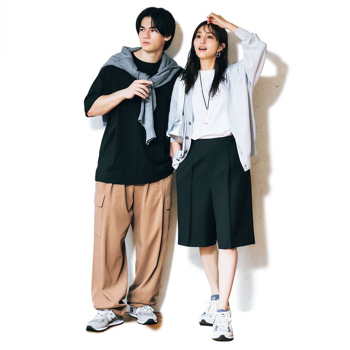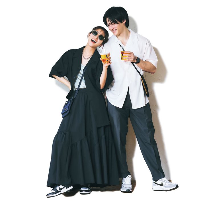 潜入調査がバレないよう カップルらしいリンクコーデで街へ。 完全ペアじゃなく、色や小物で リンクさせるのが東京流らしい