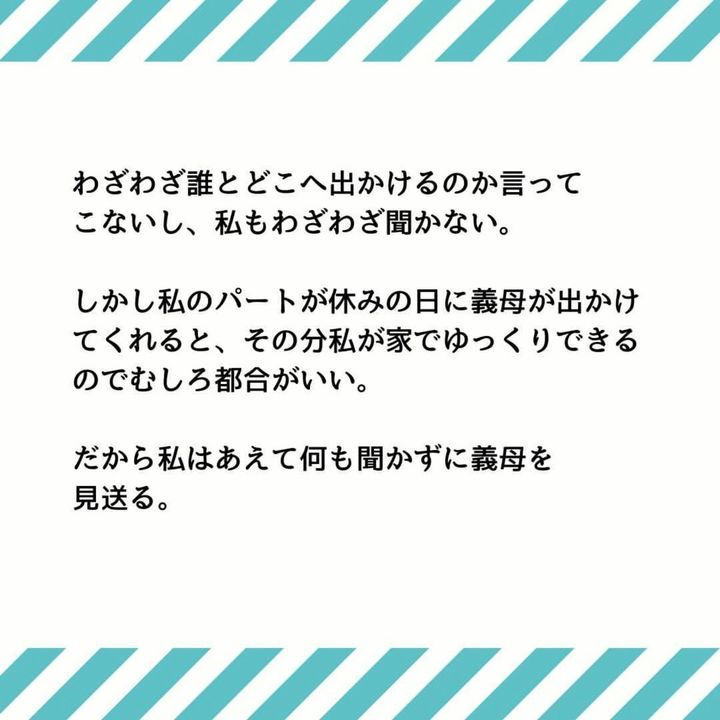 義母の外出が増えたことで、ヒロミはパートが休みの日も家でゆっくり過ごせる時間が持てるようになりました。義母との関係に少し変化が見え始めたころ、なんと職場の同僚から義母がパチンコ屋に並んでいると伝えられました。