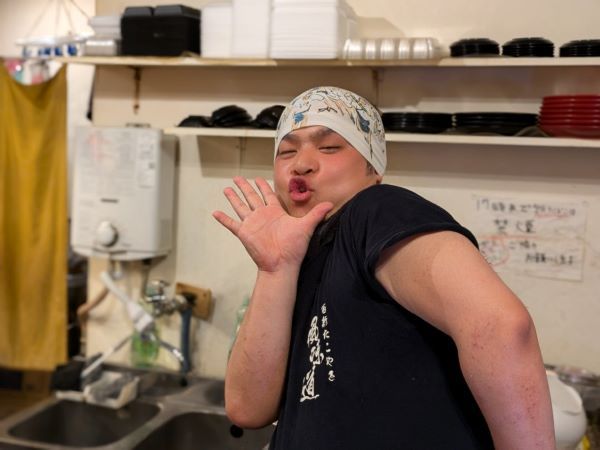 その生地というのは、とんこつ、鶏ガラ、野菜、果物を煮込んだスープを生地に混ぜ込んでいるという贅沢なものなんです。粉も独自で配合されたものを使っています。さあ焼きあがりましたよ~。