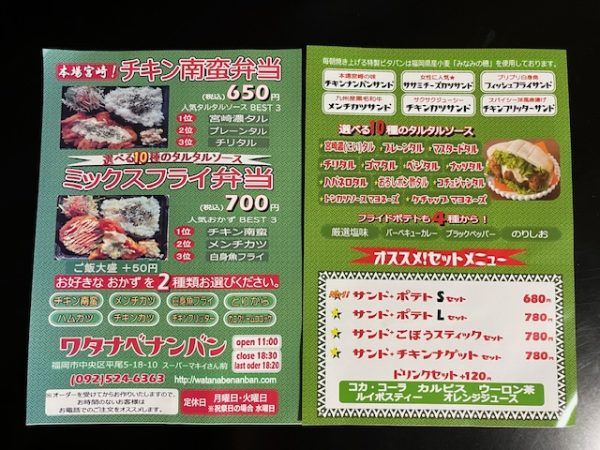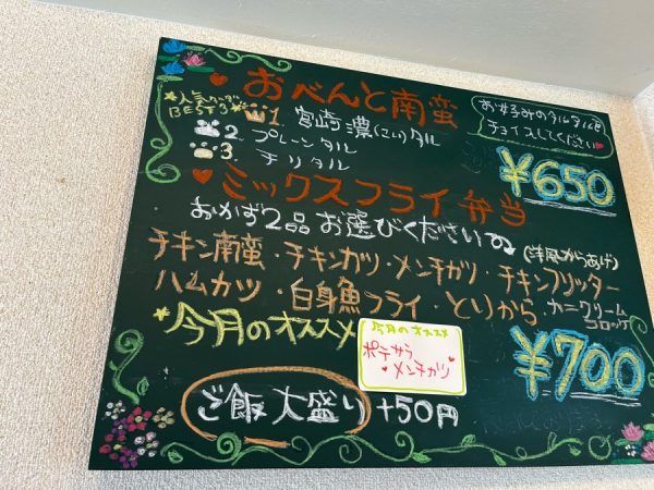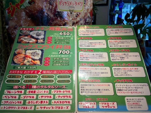 ポテトの味も厳選塩味、バーベキューカレー、ブラックペッパー、のりしおの4種類から選べます! そして、最近の人気メニューはチキン南蛮弁当とミックスフライ弁当だそうです。