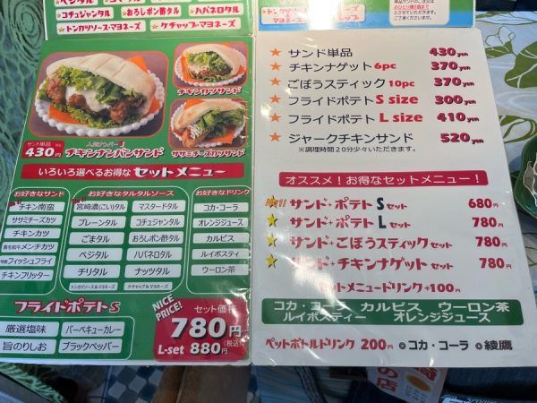その他にもマスタードタルやベジタル、コチジャンタル、トンカツソース&マヨネーズ、マヨネーズ&ケチャップ、ハバネロタルなんかもあります♪そしてお得なセットメニュー! サンド+フライドポテト+ドリンクセットで780円!(ポテトL盛りで880円)