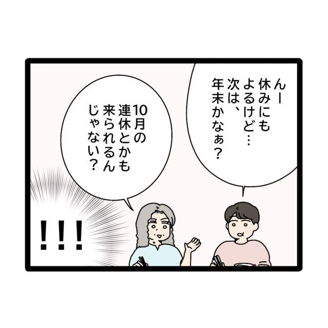 「次は年末かなぁ」と答えたひできさんに義母は「10月の連休とかも来られるんじゃない?」と提案しました。