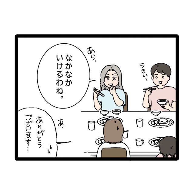 ハンバーグと聞いていかにも不満そうだった義母でしたが、「あら、なかなかいけるわね」と言って食べてくれました。