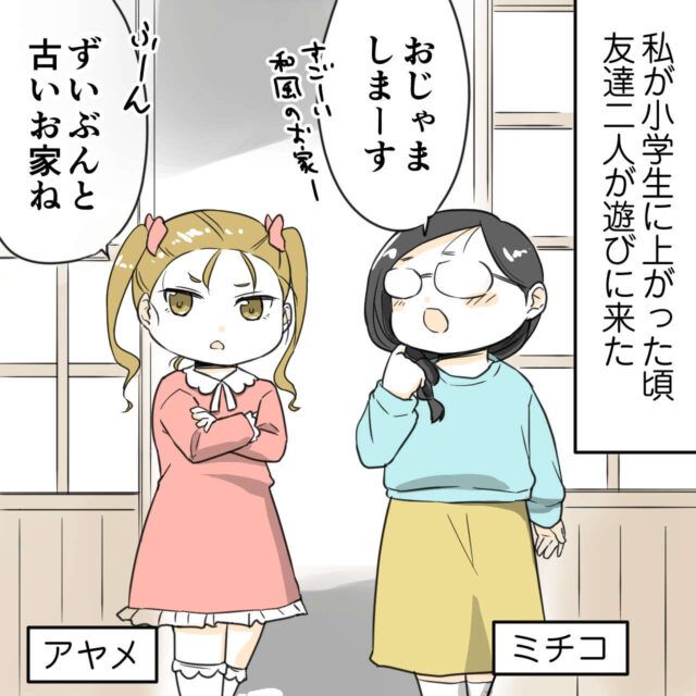 「おじゃましまーす。すごーい和風のお家ー」というミチコちゃんと、