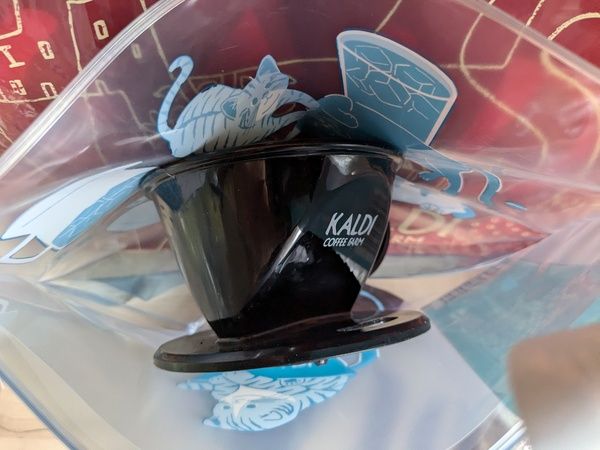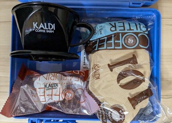 カルディのドリッパーやメジャースプーン、ペーパーフィルターなどのコーヒー器具が入ります。アウトドアでコーヒーを淹れるという人にピッタリ。ドリッパーは縦方向に入れると「サマートランクボックス」に入りました。