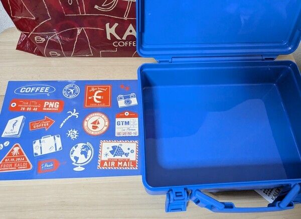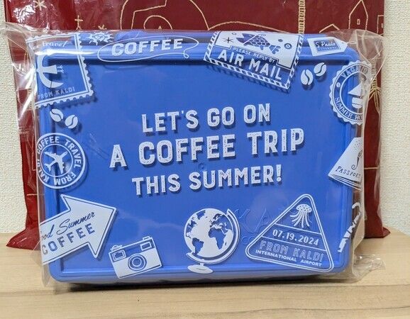 カルディオリジナル「サマートランクボックス」は、世界を旅するように各地のコーヒーを楽しめる、バラエティ豊かなドリップコーヒーを5種をトランクボックスに詰め込んだものです。おしゃれなシール付き。