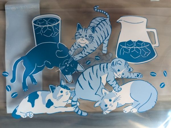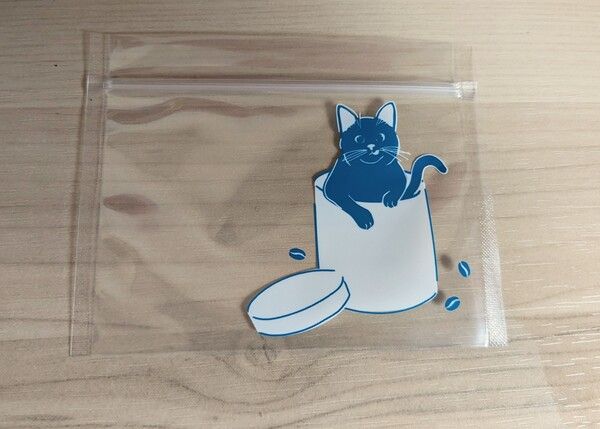 「オリジナルジッパーバッグ」は、ねこのイラストが入った、表と裏のデザインが異なるものです。猫好きにはたまらない「オリジナルジッパーバッグ」ですね。