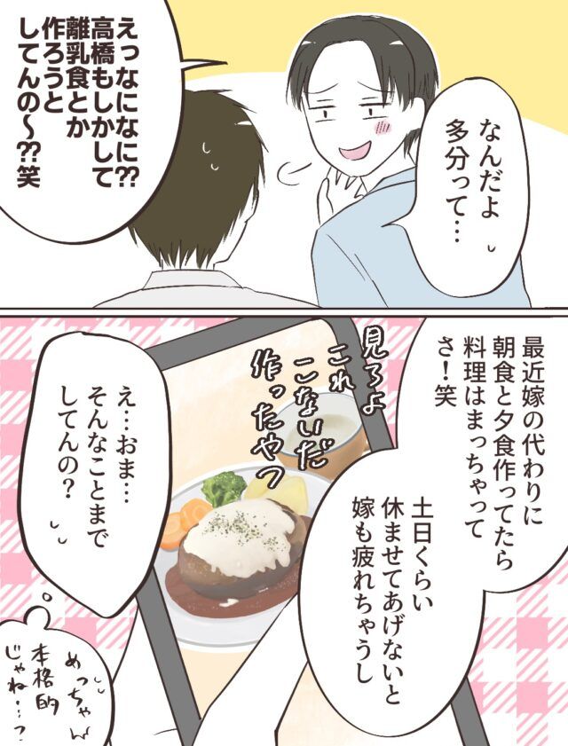 3. 産後の妻を労い料理する同僚に驚き。土日は「自分が」ゆっくりしたい粗探し夫[11-1]|ママ広場マンガ