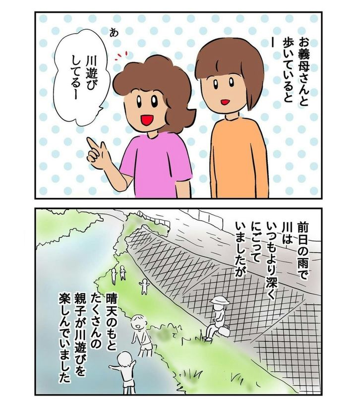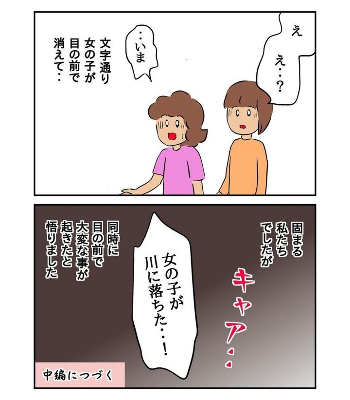 しかし、義母と偶然に目撃したのは女の子が川に落ちる姿。まさか目の前で水の事故が起きるとは誰も予想していなかったはず。いつもより深く、濁っていたという川に落ちてしまった女の子は無事でしょうか…。