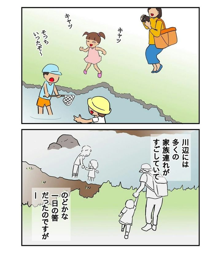 前日は雨が降っていたものの、この日は晴天。大きな公園に川遊びもできるとなると子どもも大人もつい楽しくて気持ちがゆるみますよね。家族で訪れていたあやかずさんも楽しい時間を過ごすはずでした。