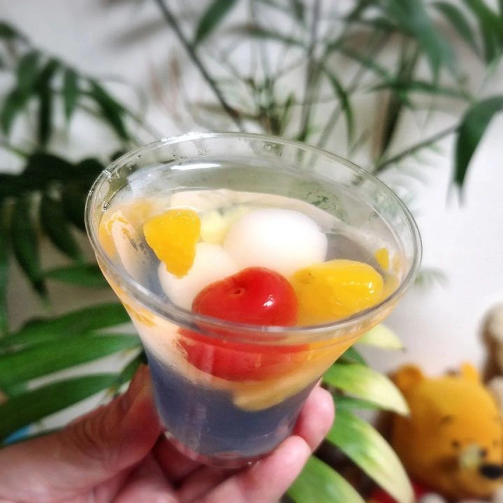 「夏色ポンチゼリー」は、みかんやパイン、さくらんぼなどがトッピングされた、カラフルな見た目が特徴のひんやりスイーツです。りんご寒天やレモンゼリーなども入っており、さっぱりと食べられるのも魅力!もちもち食感の白玉も入っていて、食べ応えも抜群です。