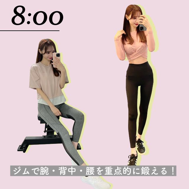 東京の実家にいるときは、マンションに併設されているジムでストレッチや筋トレを。夏は肌見せファッションも多いので、腕、背中、腰の引き締めを目指して頑張っています!