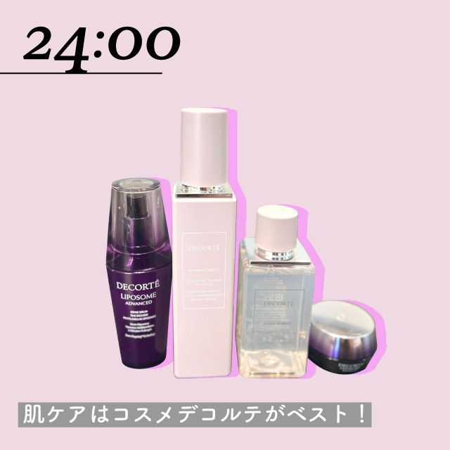 24:00 「コスメデコルテ」で肌ケアしてから就寝