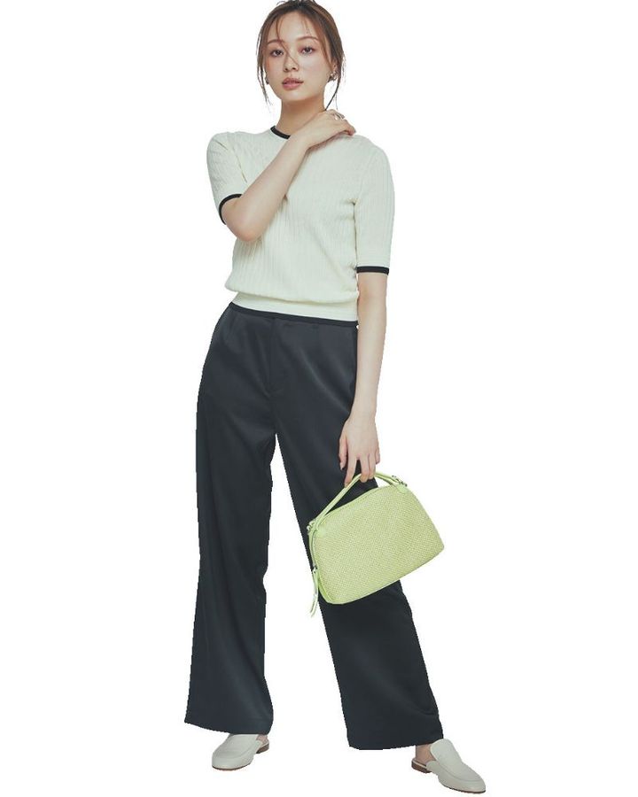 夏休み明けかつ怒涛の週末は、ゆったりしたワンツーコーデでストレスフリーな装いに。とはいえ手抜きに見えないよう素材にこだわってメリハリをつけるのを忘れずに。トップスはあえての白ニットで知的な印象にしつつ、パンツはいつもの黒パンツをサテン素材へシフトして光沢をON。締め付け感も抑えたうえに上品な佇まいに仕上がります。抜け感たっぷりのローファーサンダルでこなれ感を加えて。