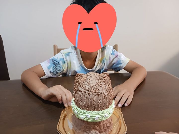 かわいすぎるキラキラお目目に感情移入してしまった長男が、ケーキと見つめ合っているうちに泣き出し、切って食べることに罪悪感を覚えしました…。かわいい…。