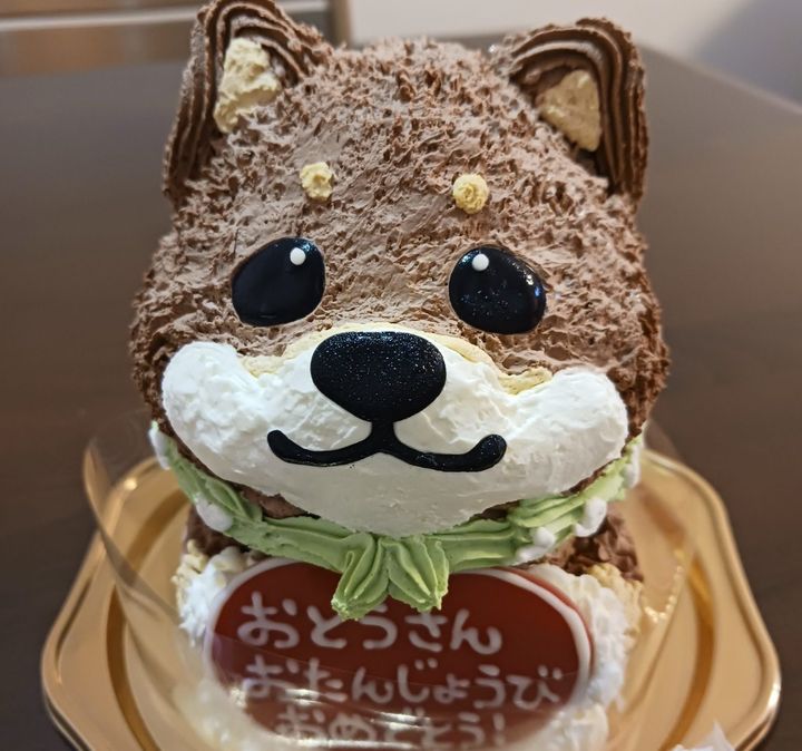 以前、クマの木彫りケーキを買ったわが家、かわいいケーキに魅了されてしまい、今度は別のお店で柴犬の立体ケーキを買ってみました!つぶらな瞳がかわいいい!