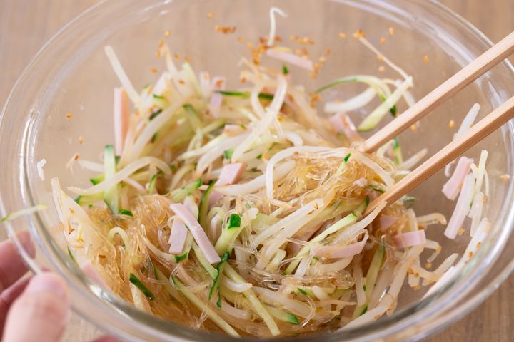 3. 春雨は戻さないで!レンジで作る最強「春雨サラダ」 【もあいかすみの一品で大満足「働楽ごはん」32】
