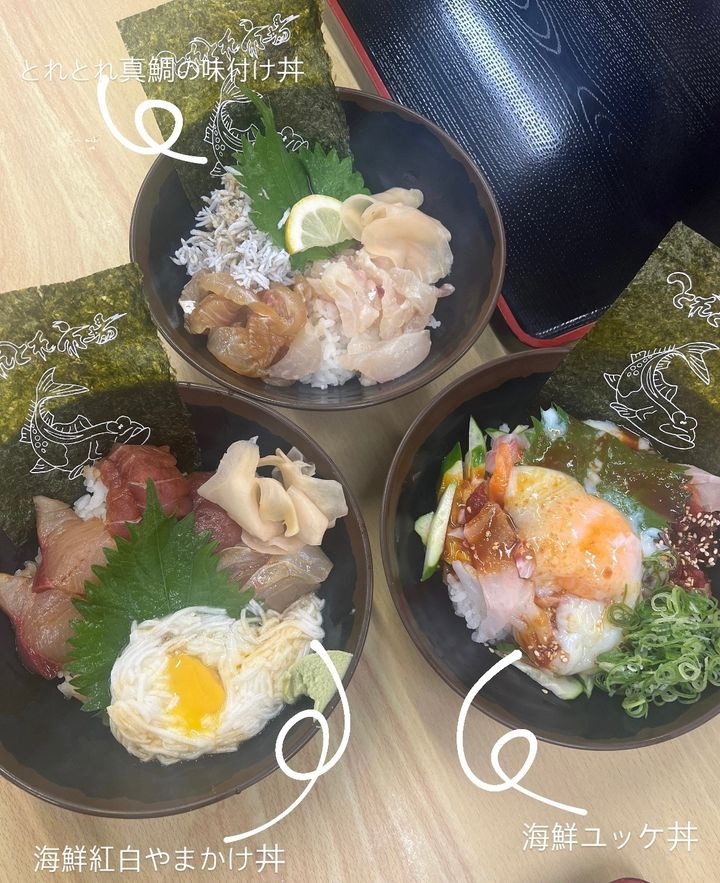 とれとれ市場内にある、新鮮なお魚を使った海鮮丼のお店。