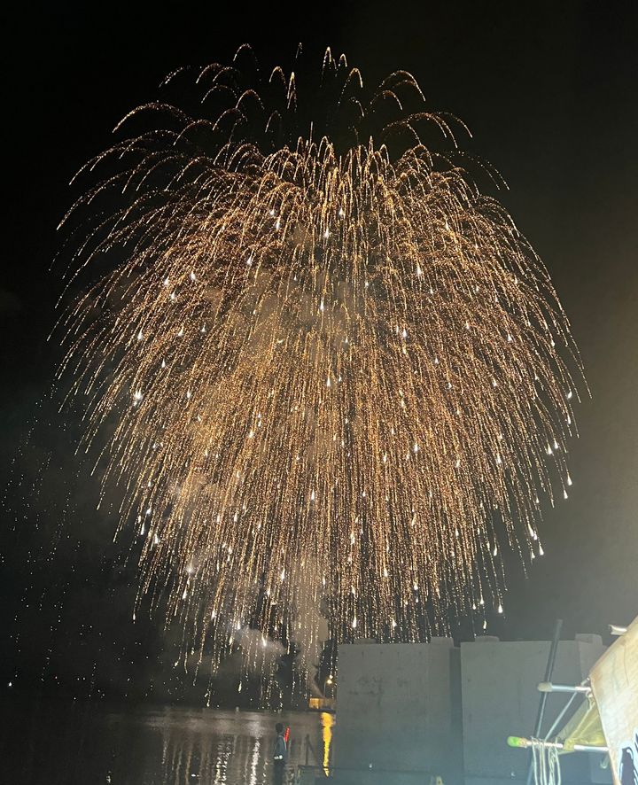 レジャーシートを敷き、屋台の食べ物を食べながら花火を見て、夏を感じました☀️🫧🎆