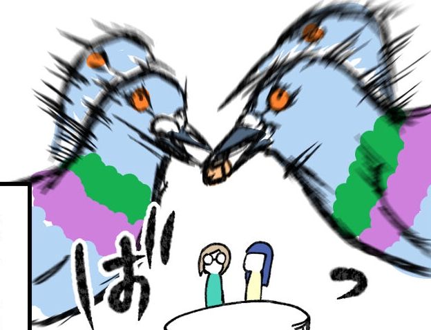 3. 【育児マンガ】「まるで公園の鳩!?」お菓子バトルの必死な姿に思わず爆笑!