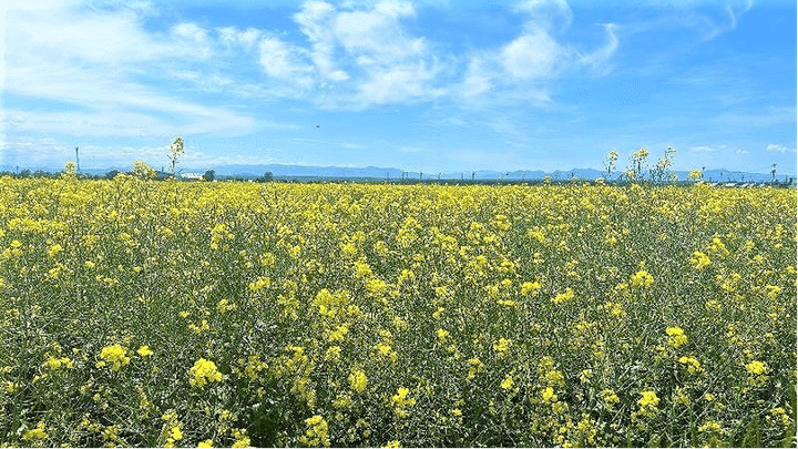 道中は美しい菜の花畑や、田植えを終えたばかりの田んぼなど美しい景色が広がっていました。