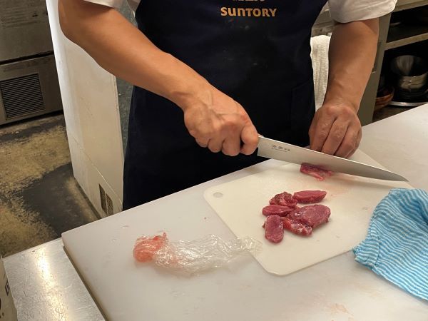 お肉に対する大将コダワリは、色々ありました。 冷凍牛ではなく、生の冷蔵肉を仕入れること。 お肉は、オーダーを受けてから塊から切り出すことで、空気に触れている時間を短くすること。 鮮度バツグンのお肉が食べられること、間違いなしです。
