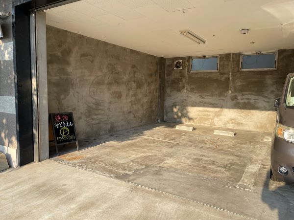みどうえんの駐車場は、お店の並び、ビル1階に1台分あります。 昼時にお店の前を通ったとき、もし、空車ならば駐車して昼食に行きましょう。 最高の昼食になることでしょう。