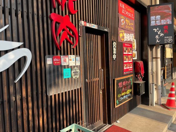 茶色い外板に、大きな赤い文字で ”焼肉”、白い文字で ”みどうえん” と記載され、いち早く焼肉屋さんであることは認識済。 前を通るたびに、ランドセルを中心に、周囲の掲示物を見るようになり、国産黒毛和牛、カレーテイクアウト、各種カード払い、店舗先に駐車場‥など、お店の情報量が蓄積されました。 一度も入店したことがないのに、これだけの情報を刷り込む手法は流石です!