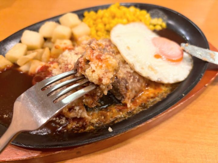 お味はというと、文句なしの美味しさ! ただでさえ濃厚なチーズがより濃く感じられ、デミグラスソースとの相性がより高まったよう。噛めば噛むほどに溢れ出す肉汁とチーズが絡み合い、パクパクと食べ進めてしまいました。