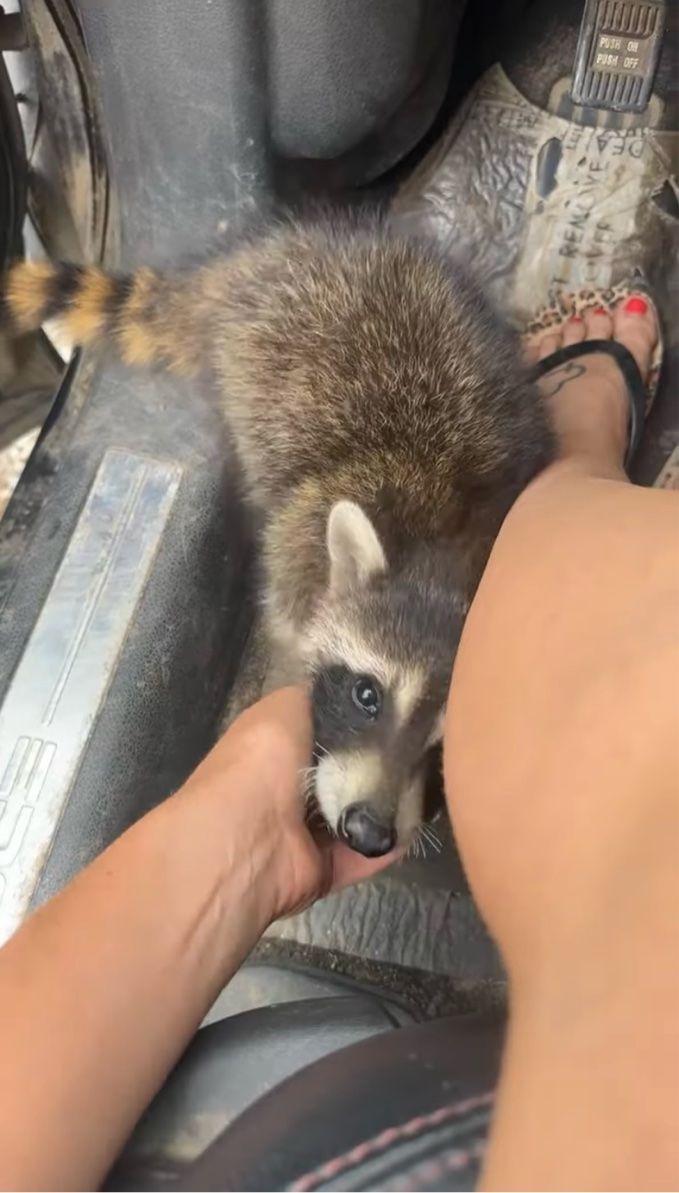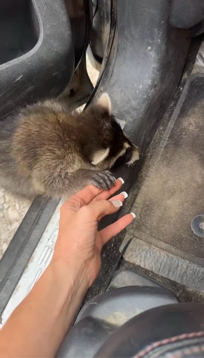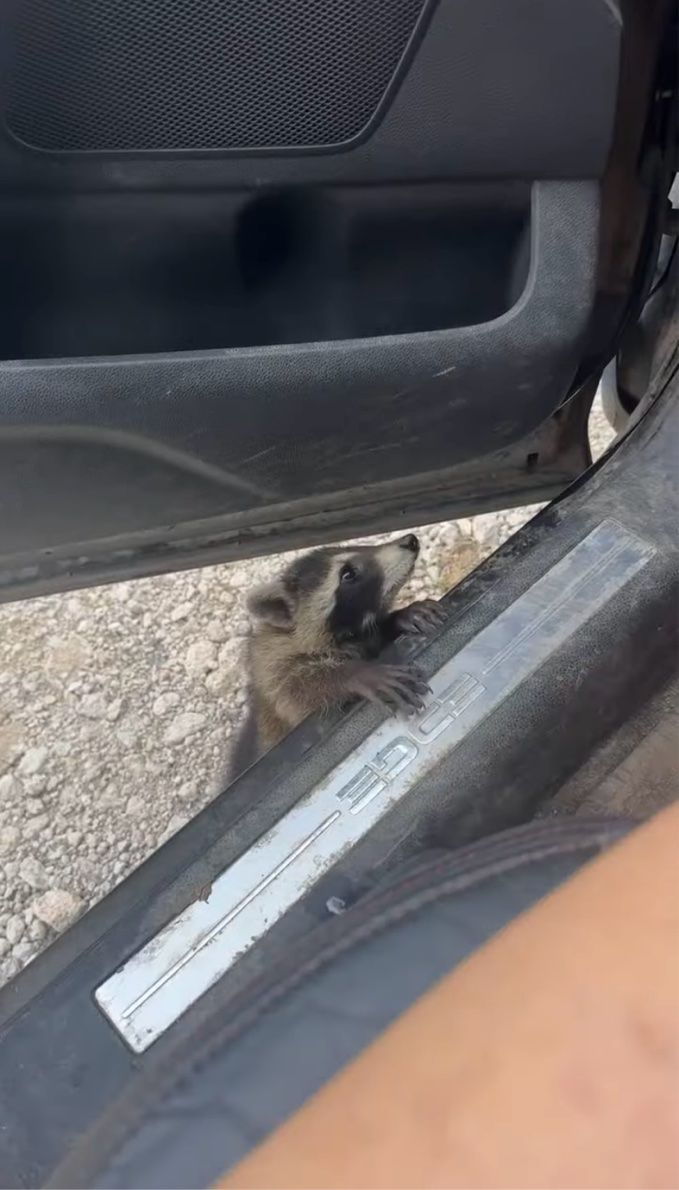 運転席のドアの隙間からひょっこり顔を覗かせるアライグマ。 驚いたことに、この子は『ドライブに連れて行って』とおねだりするかのような、大胆な行動に出たのです!