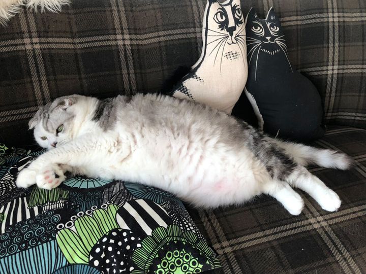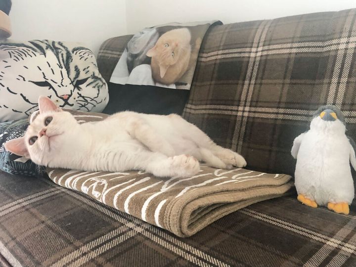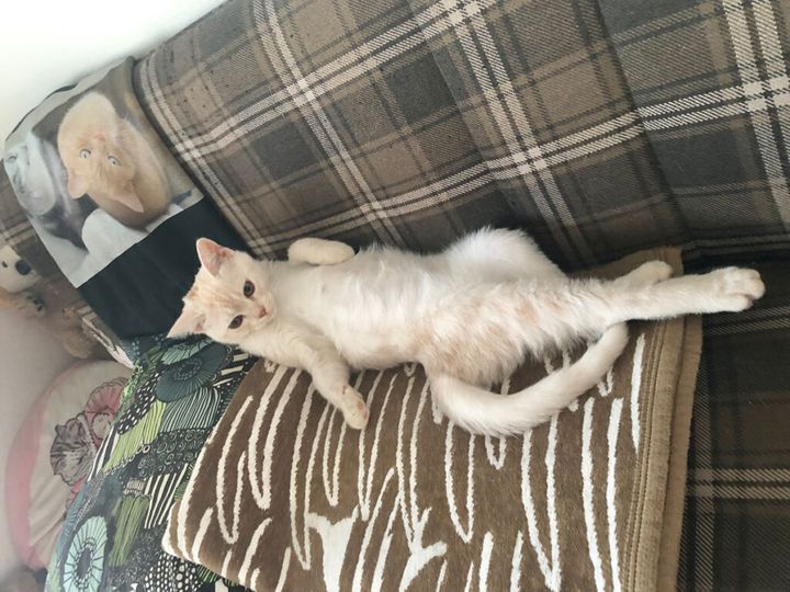 このチェックのソファは、もともとは、ぼくの前におうちで暮らしていたミーヤちゃんが使ってたんだよ。