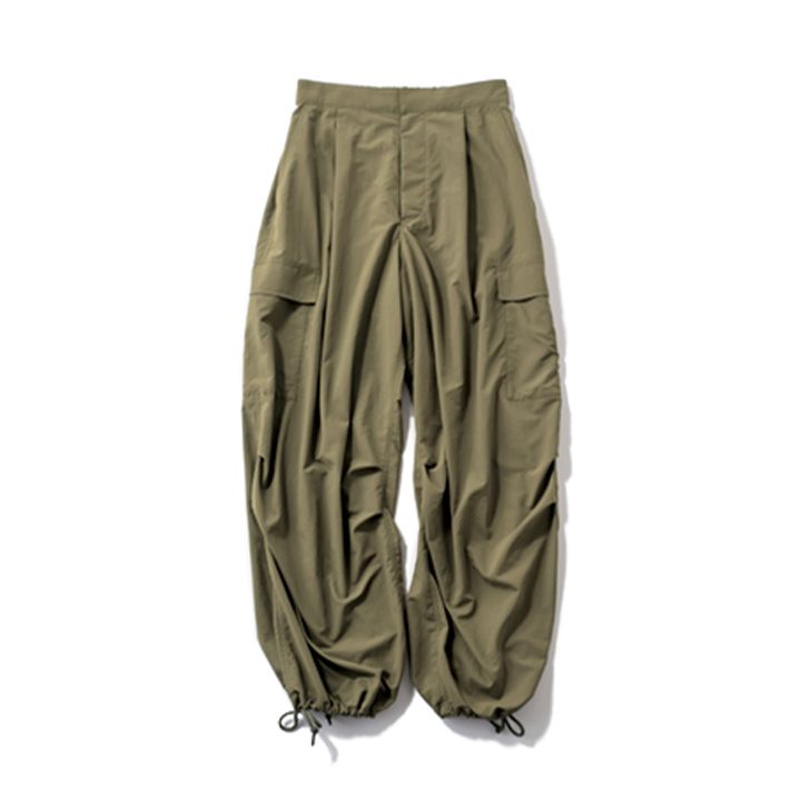 バックウエストのみゴムで、カジュアルながらすっきり見えが叶う。ドロストがアクセント。パラシュートパンツ¥21,890(ネイヴ)