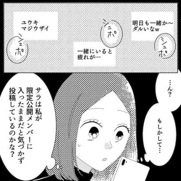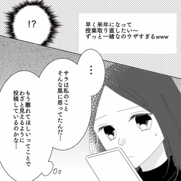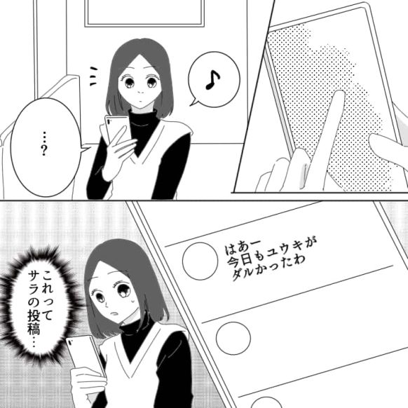 ある日主人公がSNSを見ていると、サラが書いたと思しき悪口投稿がされていて……?