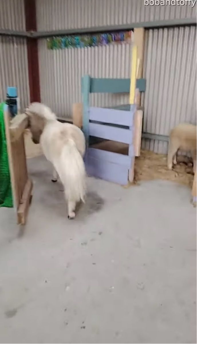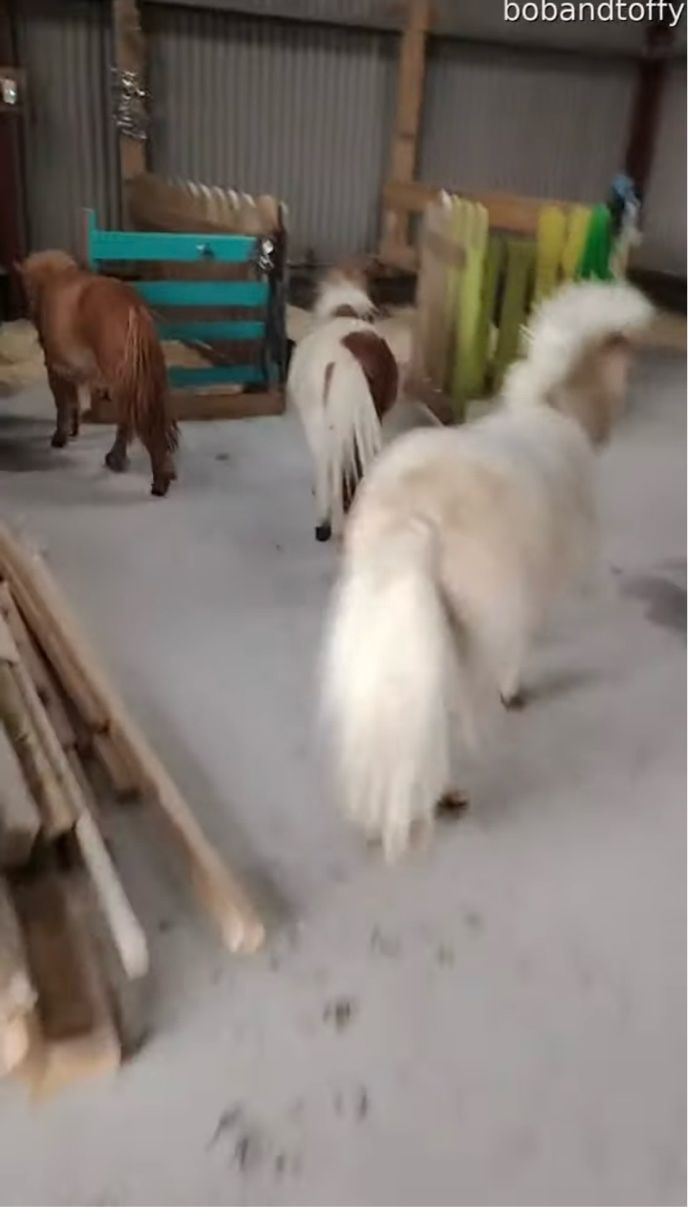 心なしか、ポニーたちは肩を落としているようにも見えます。 外で遊べないことにガッカリしているのでしょうか。